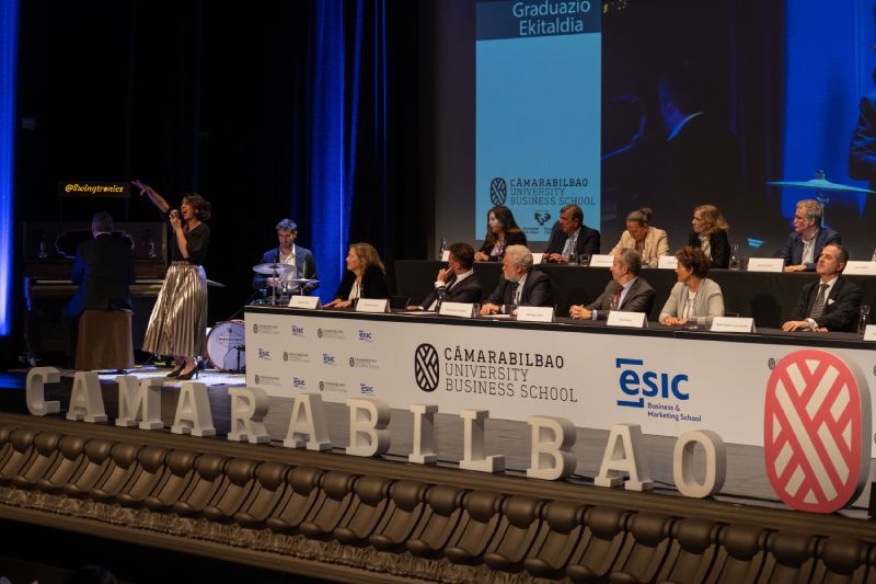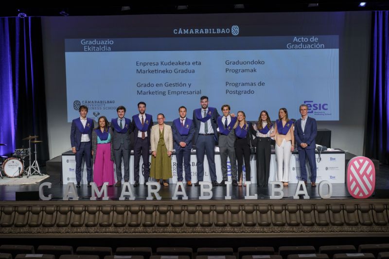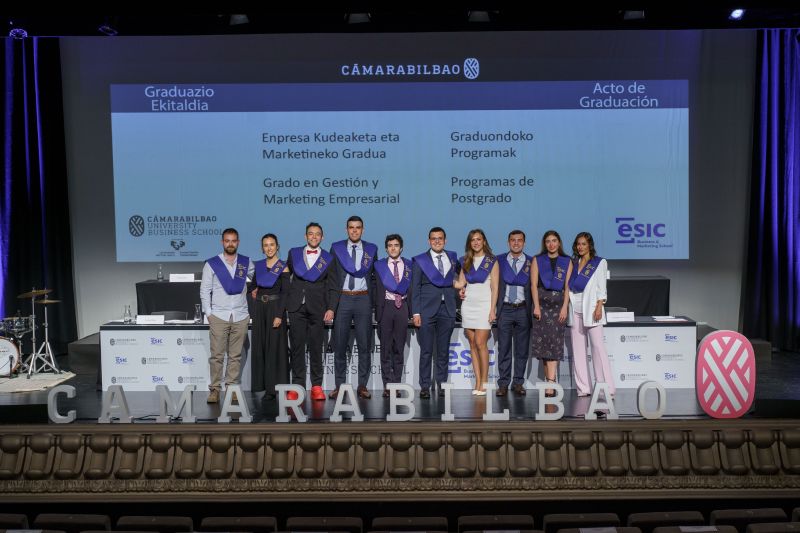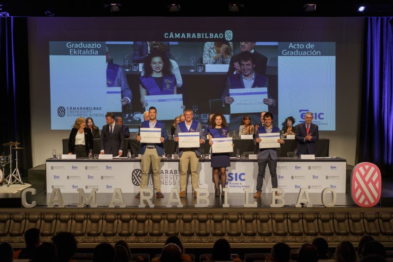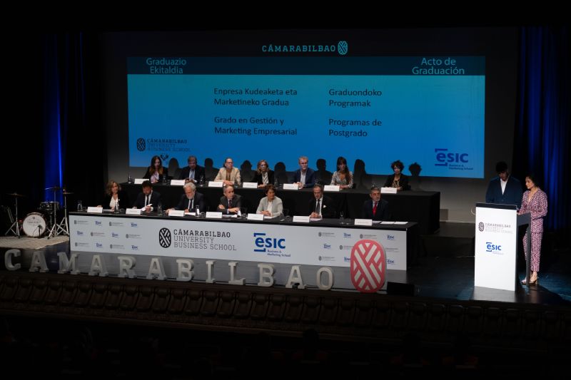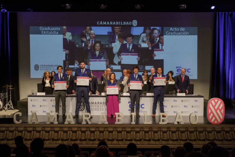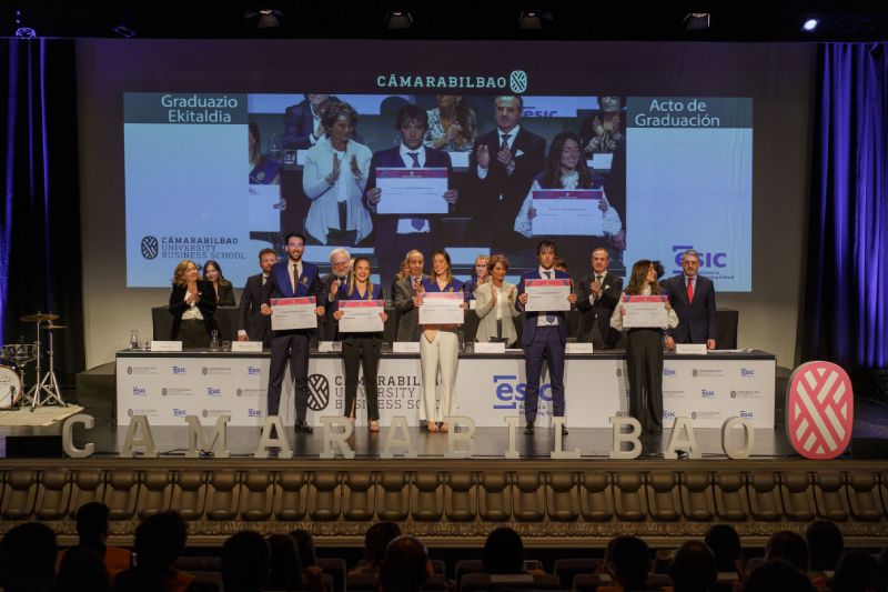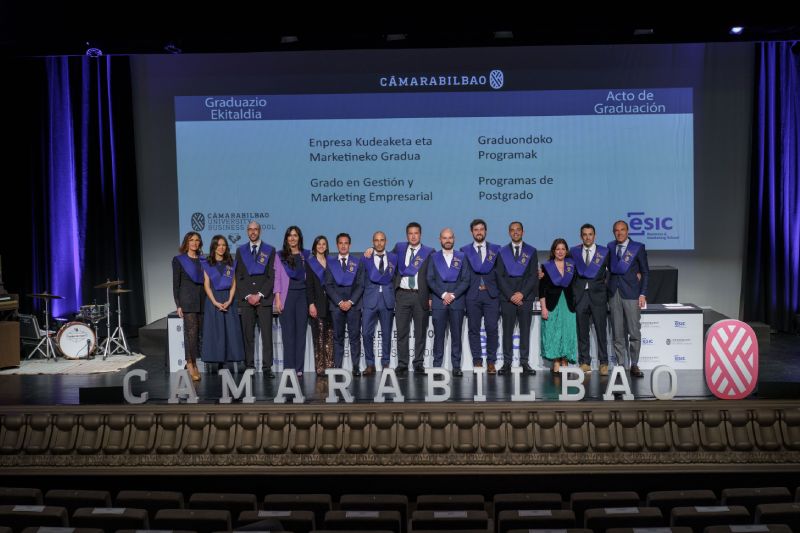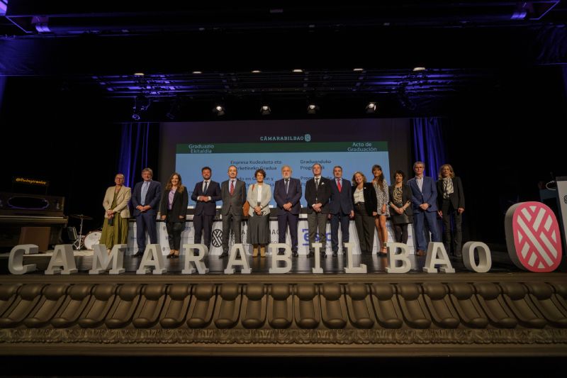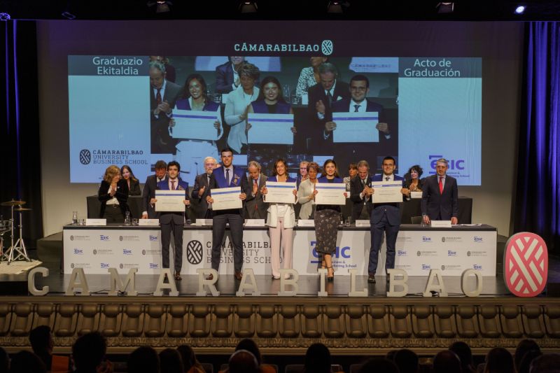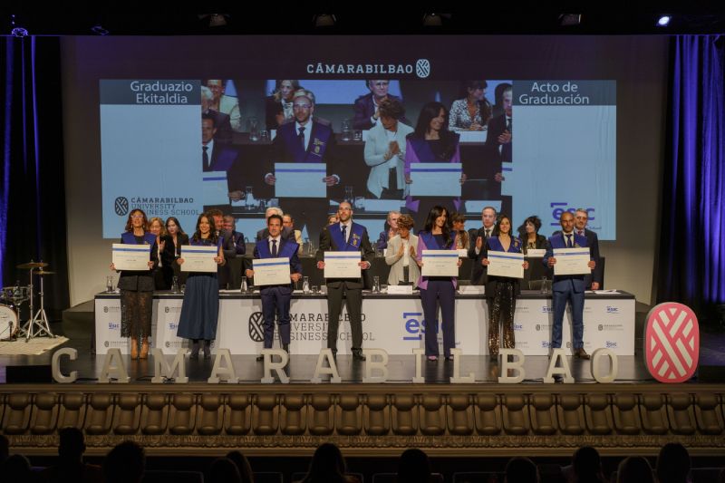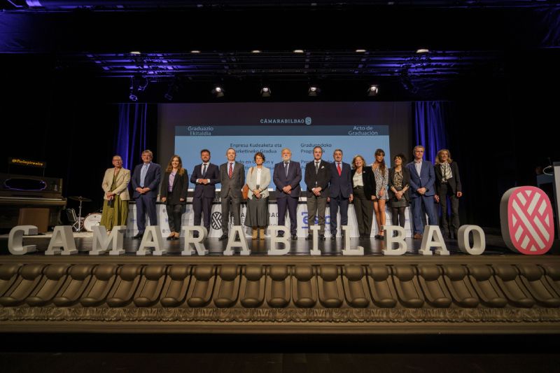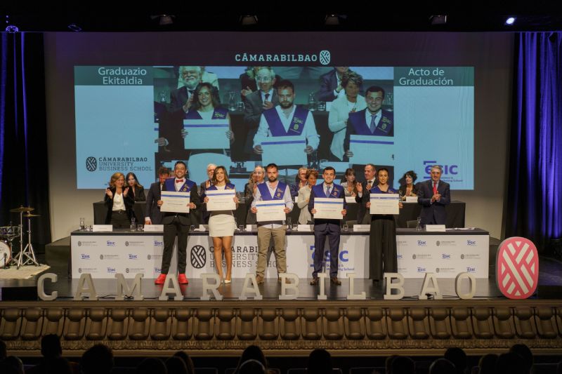 Los alumnos y las alumnas de Cámarabilbao Professional Development recibieron sus titulaciones de postgrado y máster en una ceremonia celebrada en el Azkuna Zentroa - Alhóndiga Bilbao.